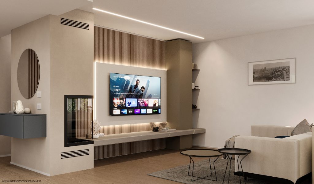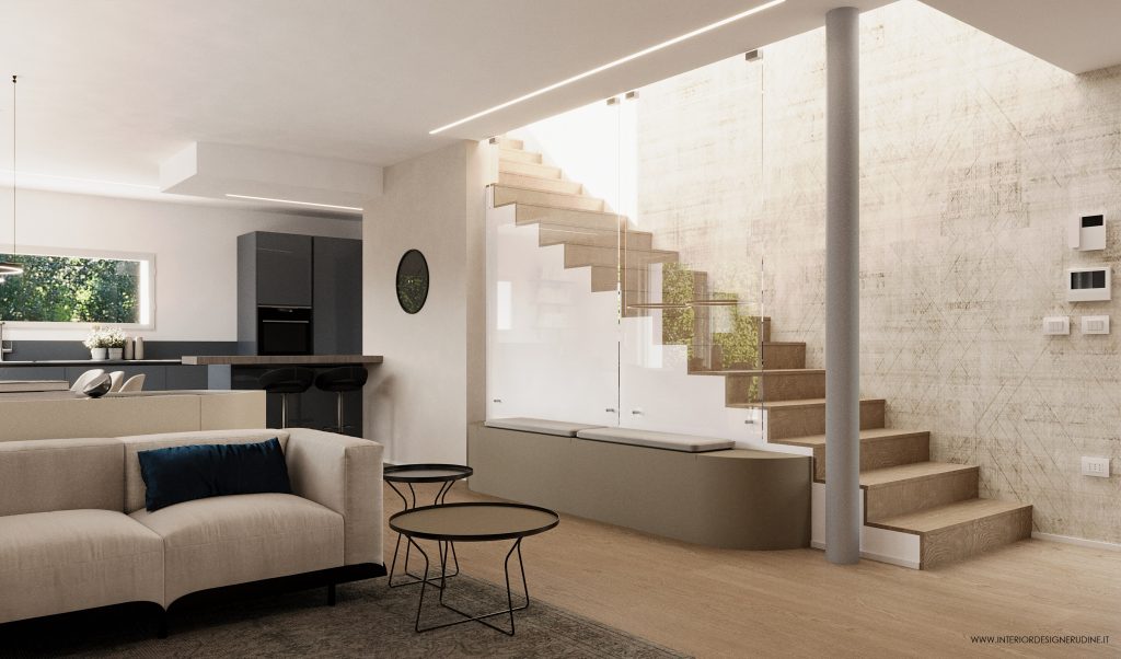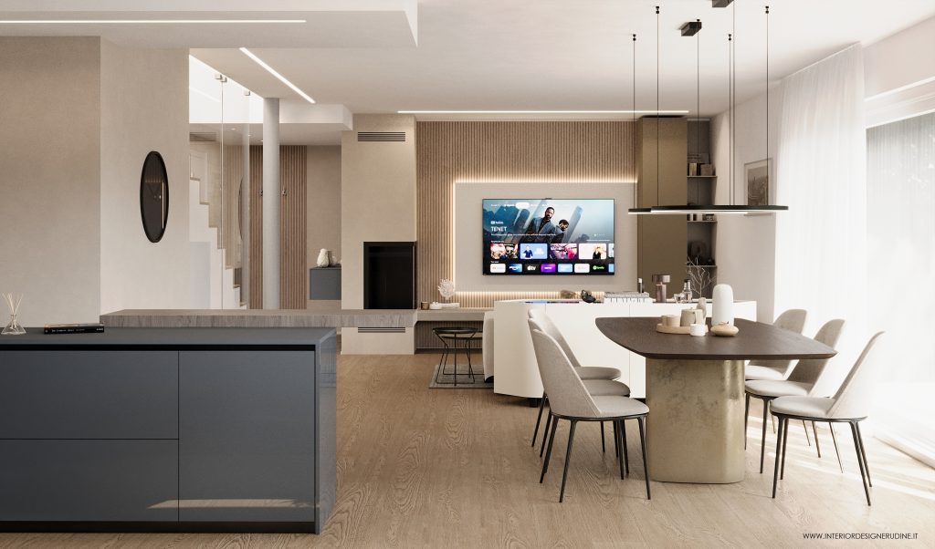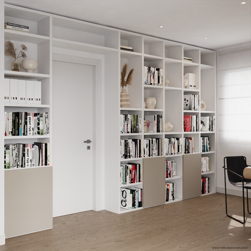 Il nostro intervento è stato quello di scaldare questo ambiente andando ad eliminare alcuni arredi da poco acquistati.